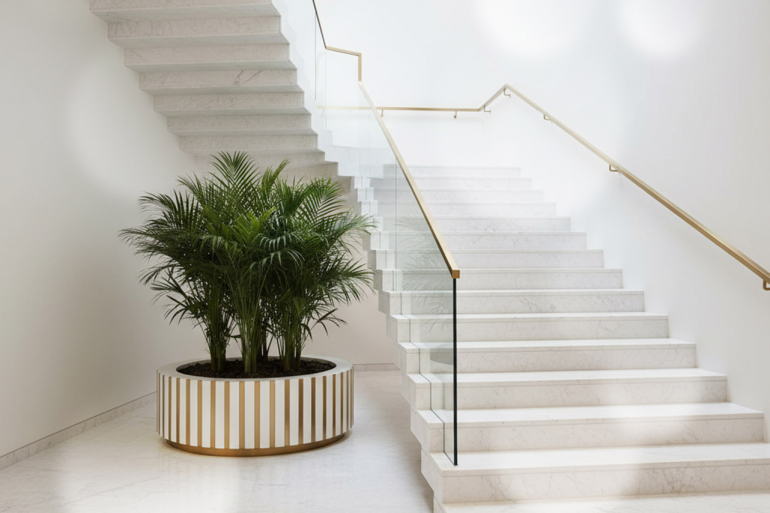 Также искусственные растения активно используют для зонирования, создания фокусных точек и визуальной коррекции пространства. Высокий и большой искусственный цветок для интерьера может зрительно увеличить высоту потолка.