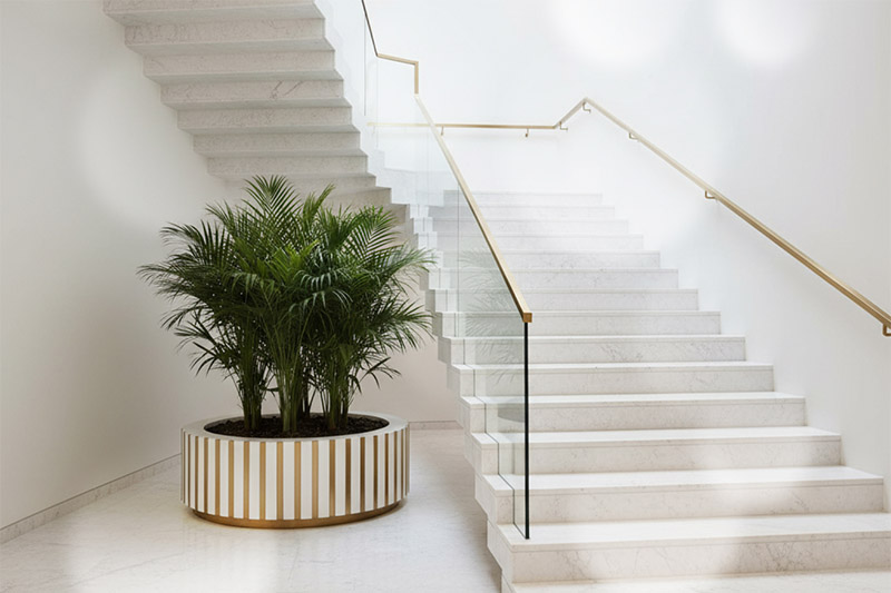- Входные группы и холлы бизнес-центров. То, как выглядит вход, влияет на впечатление о компании. Крупные деревья в кашпо, зеленые стены, зоны ожидания с растениями - все это подчеркивает статус организации;
