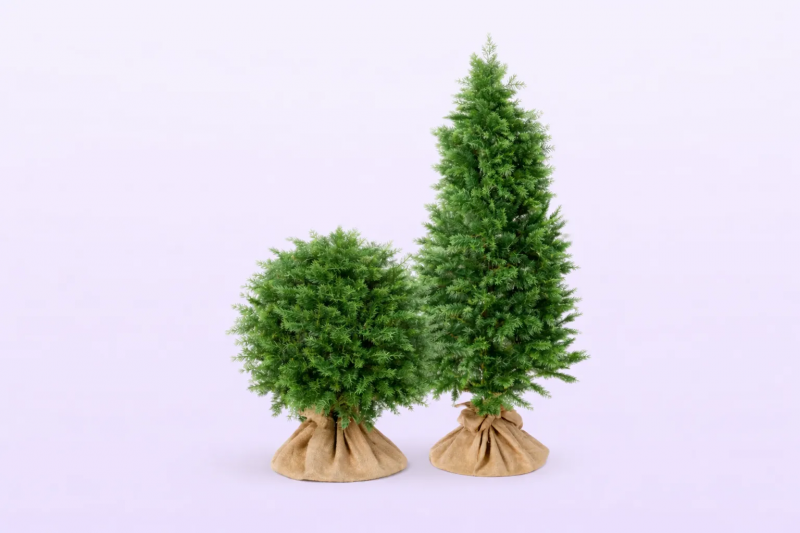 Выбирайте классическую пышную тую с литьевыми ветками и металлическим стволом и наслаждайтесь вечнозеленой красотой каждый день.