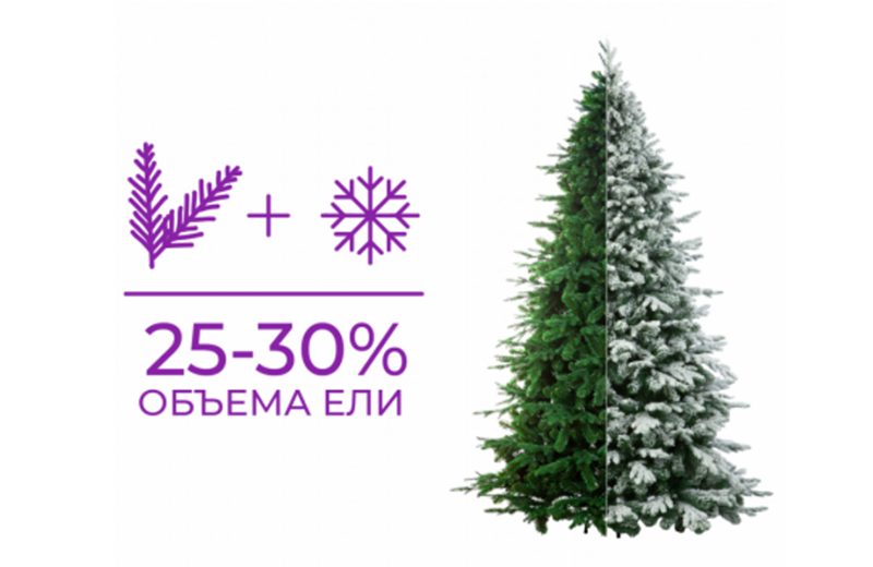 На одну ель у нас уходит контейнер снега сделанный из настоящего хлопка. Он крепится на специальный клей, который не имеет запаха и отталкивает пыль.