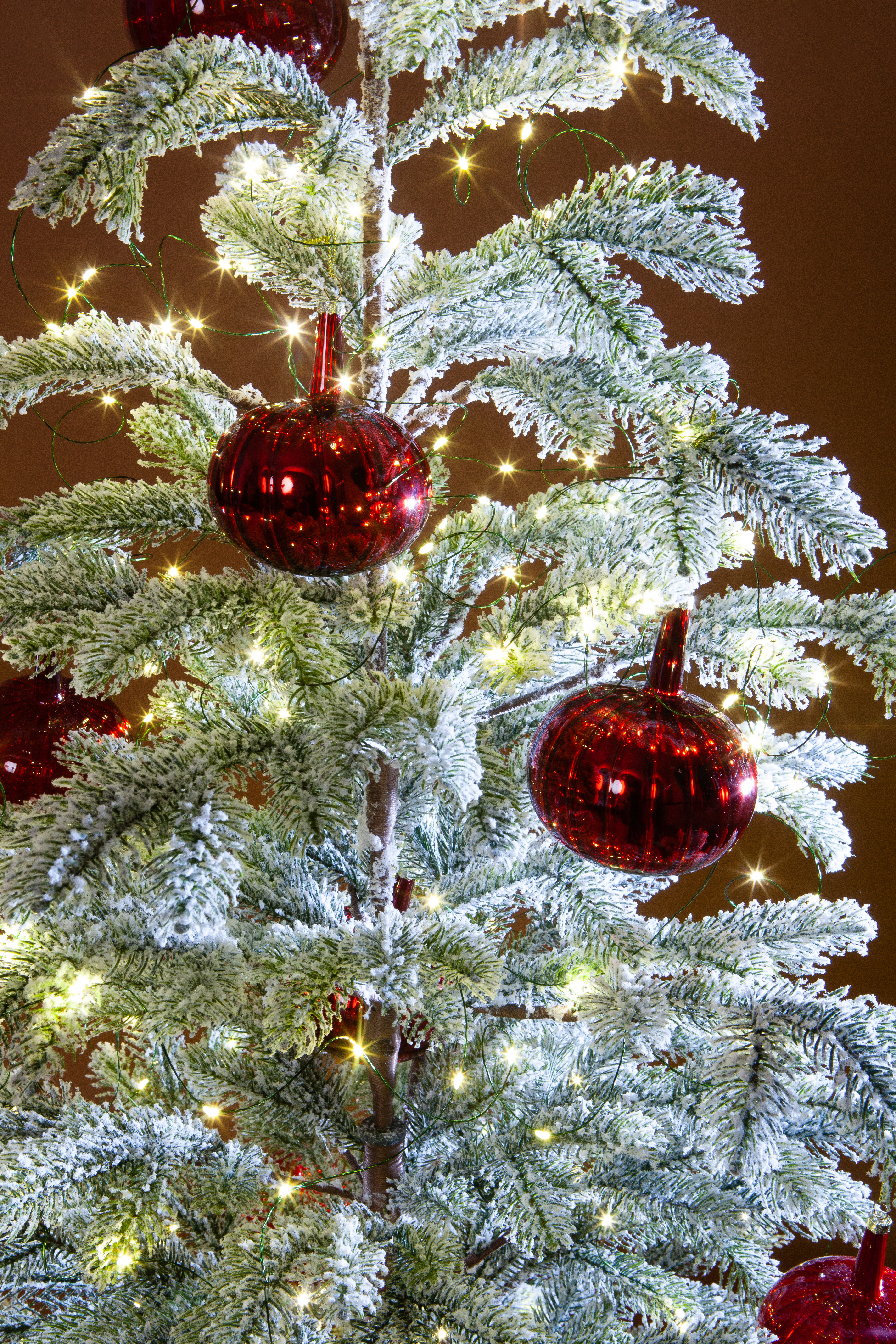 На дереве есть снег с вкраплением глитера высокого качества. Нанесен таким образом, словно Больери украсил иней. Мерцает и переливается, как только попадает луч света.
