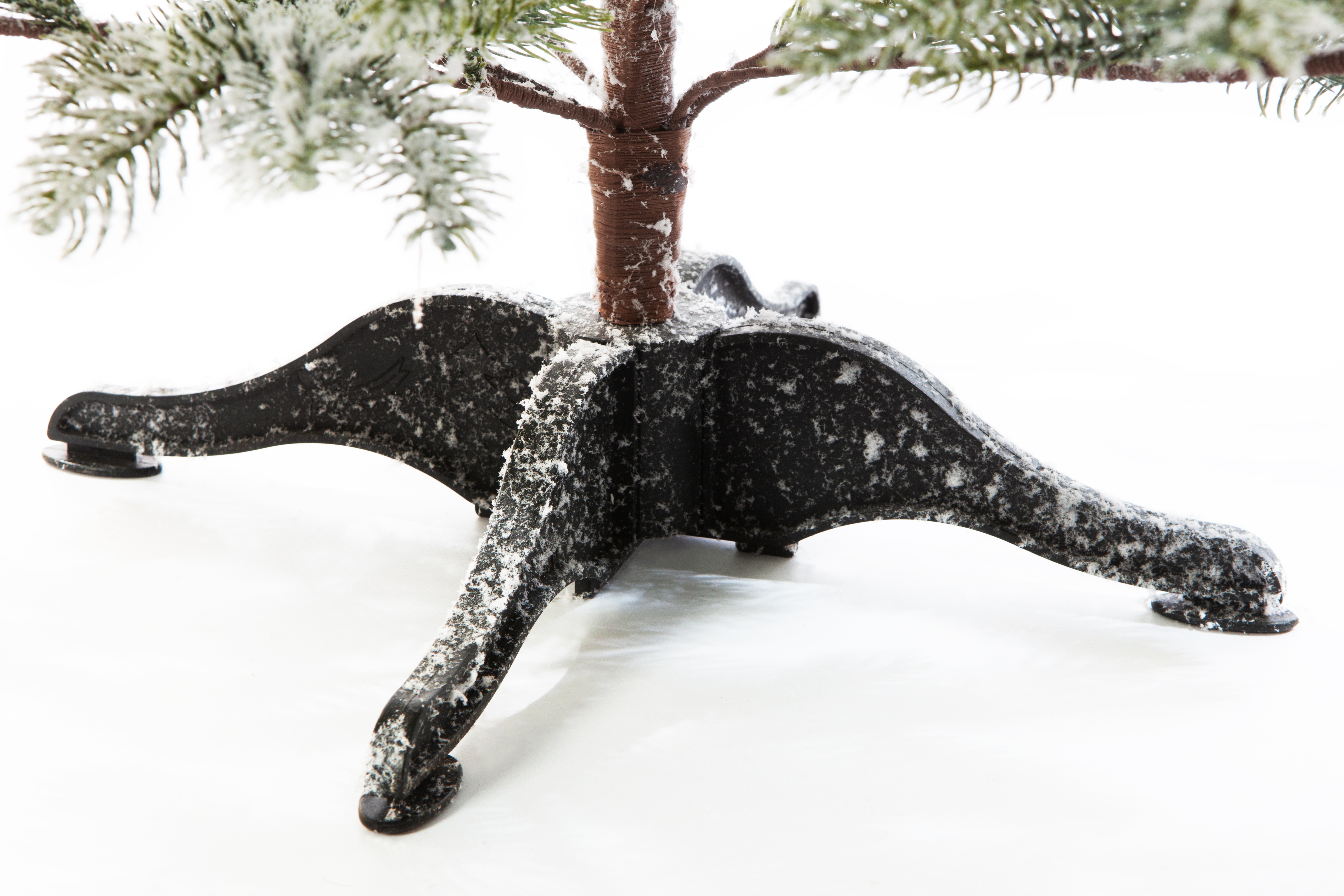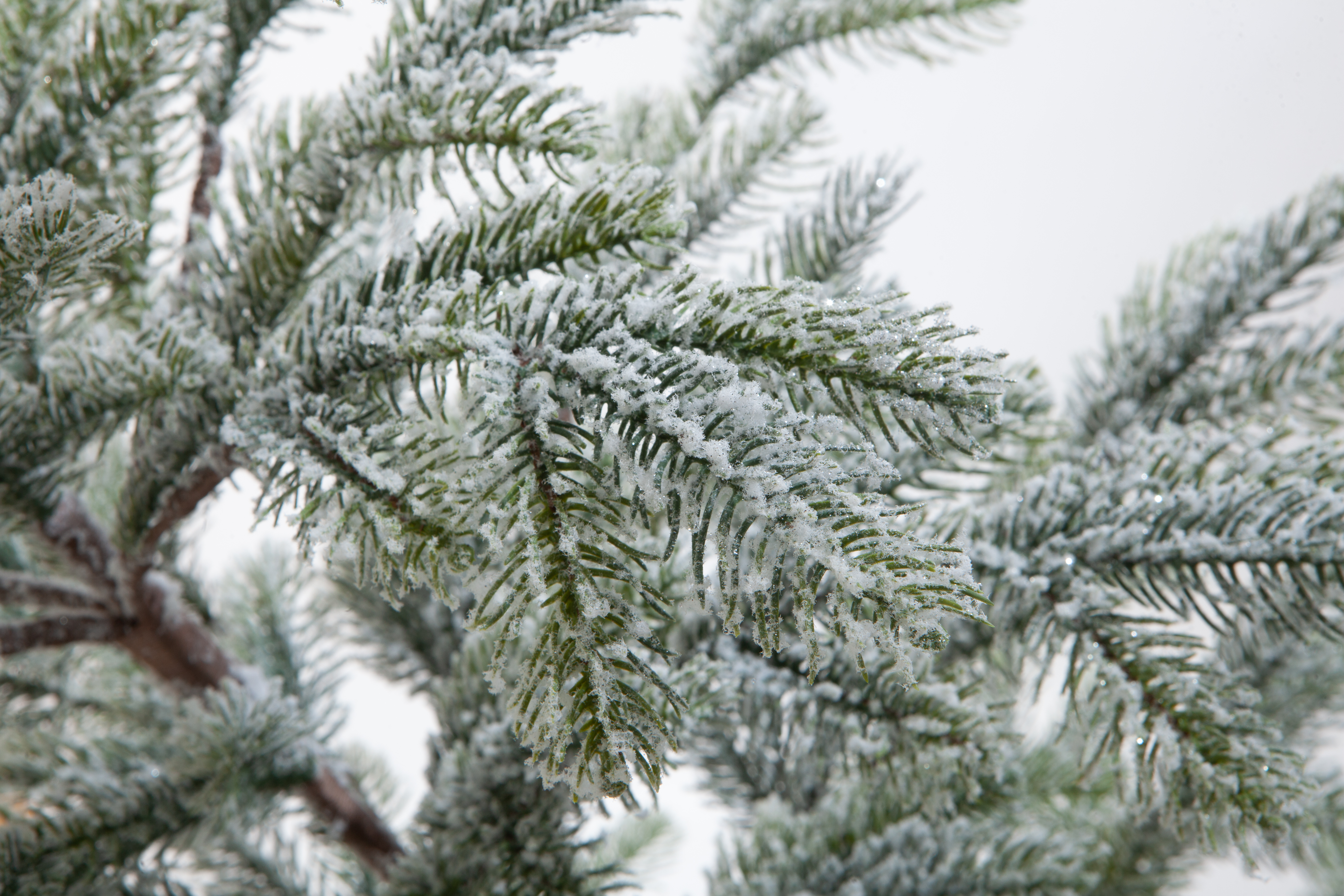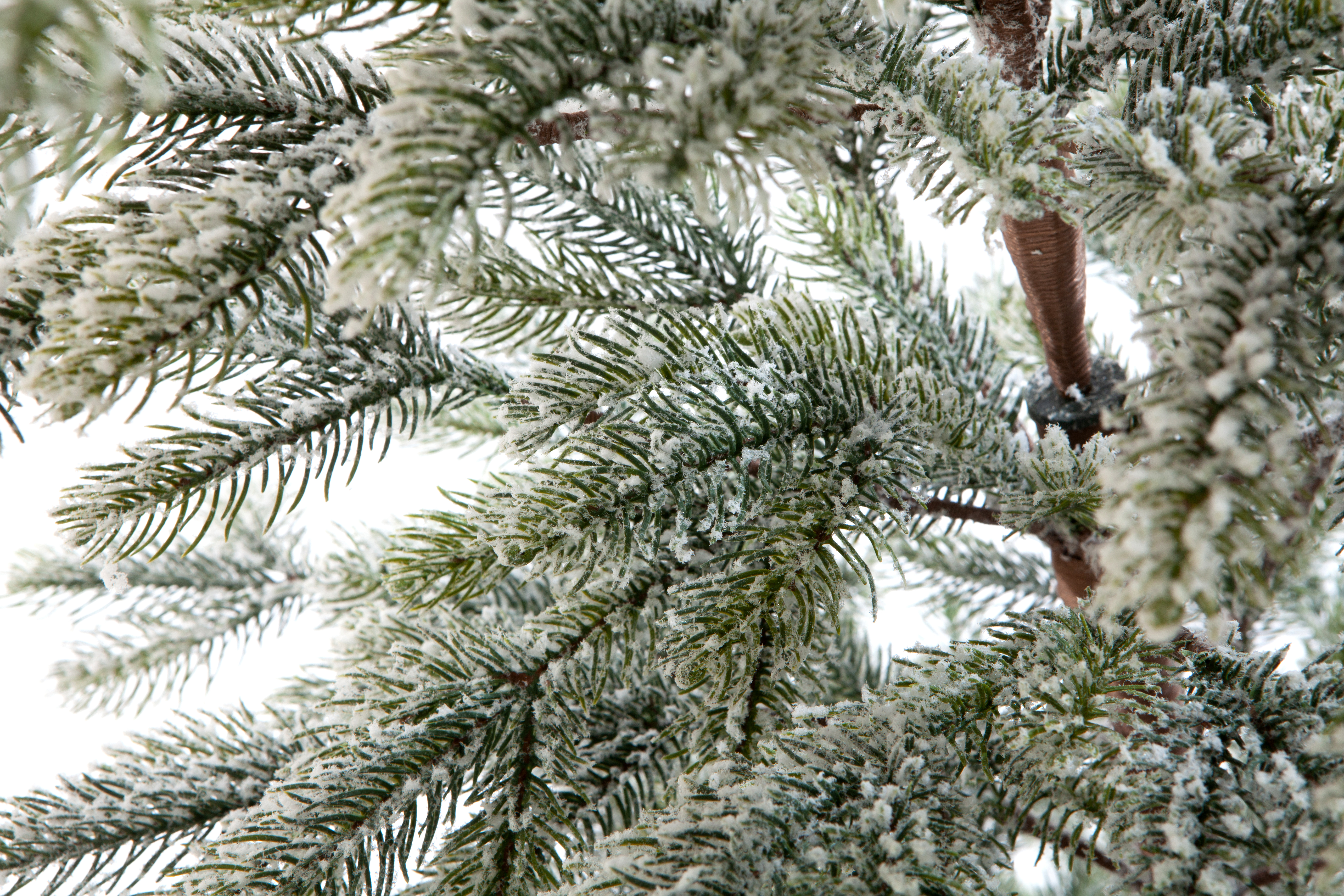 Ель выполнена из 100% литых веток. У нее плоская лапка с короткой иголкой в двухцветном градиенте. Ствол укутан коричневой нитью по всей длине.