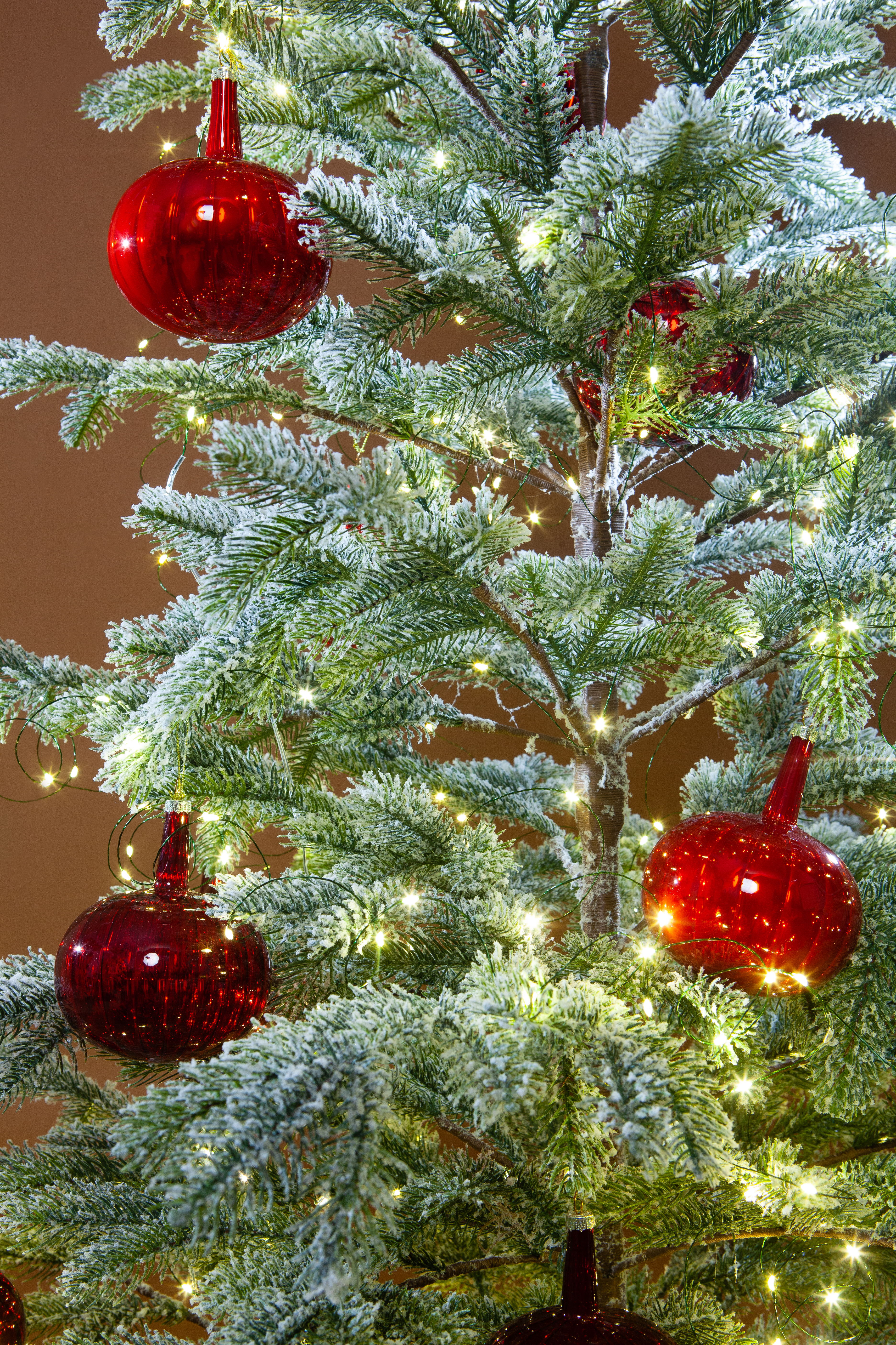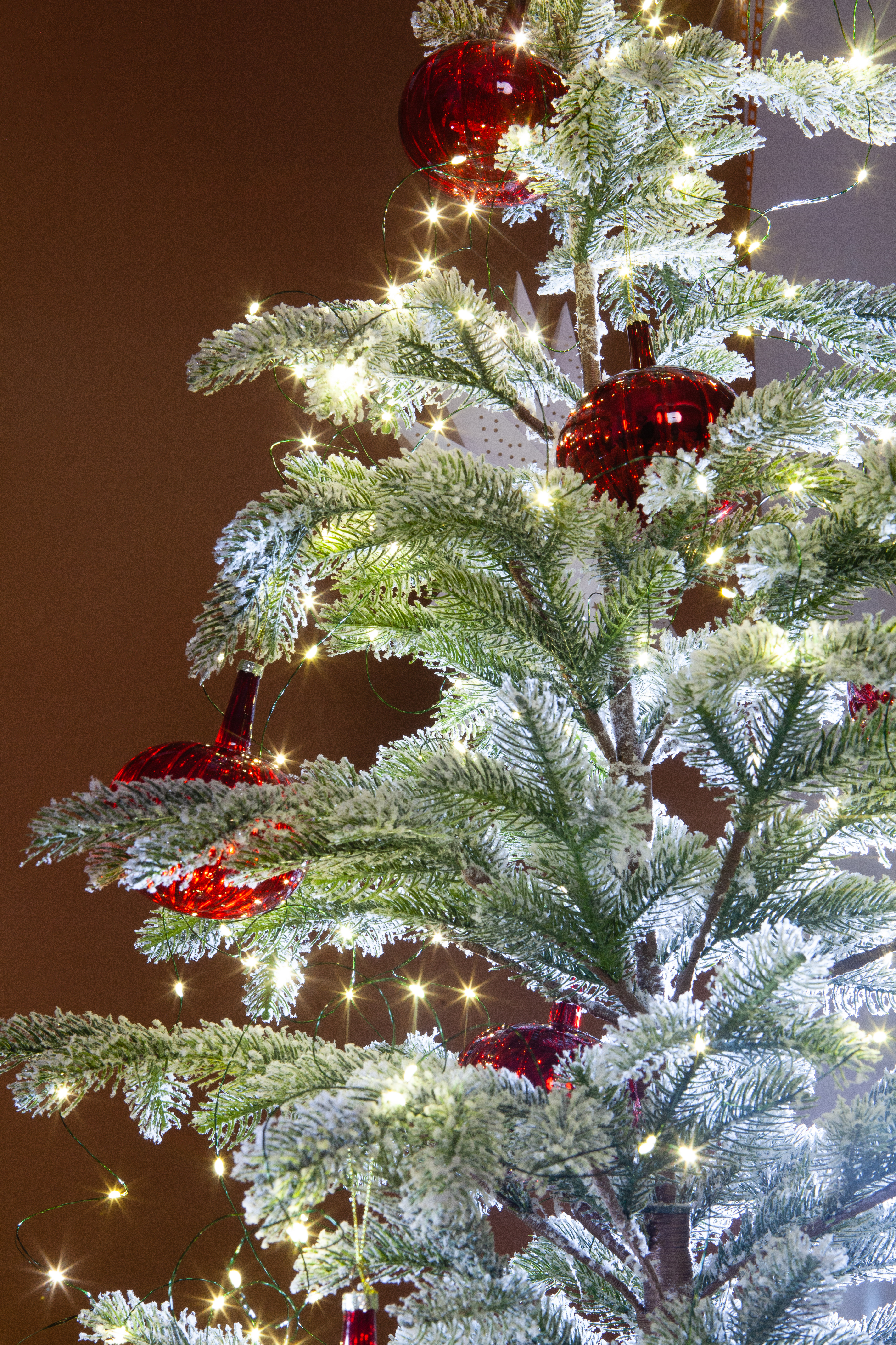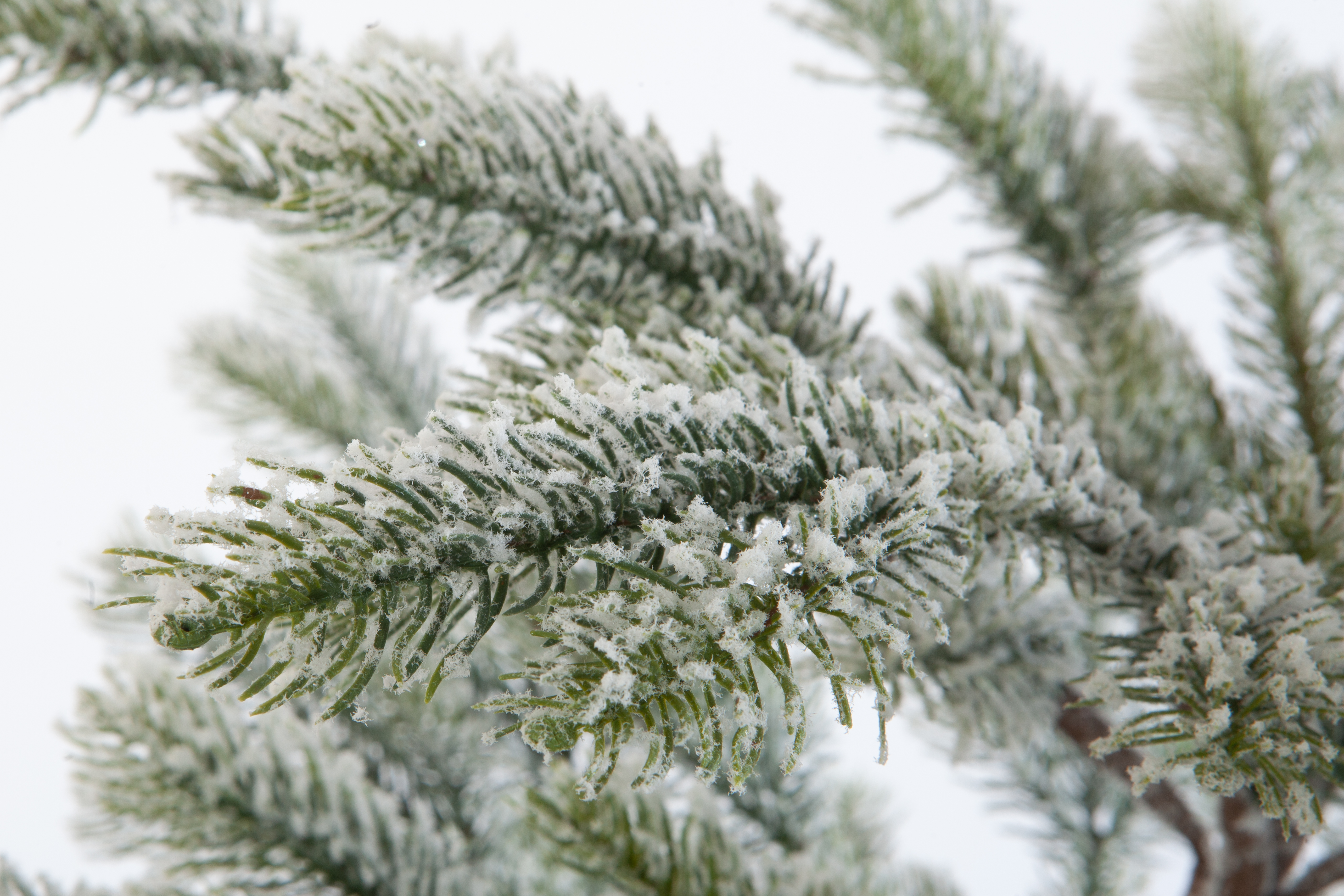 Ель выполнена из 100% литых веток. У нее плоская лапка с короткой иголкой в двухцветном градиенте. Ствол укутан коричневой нитью по всей длине.