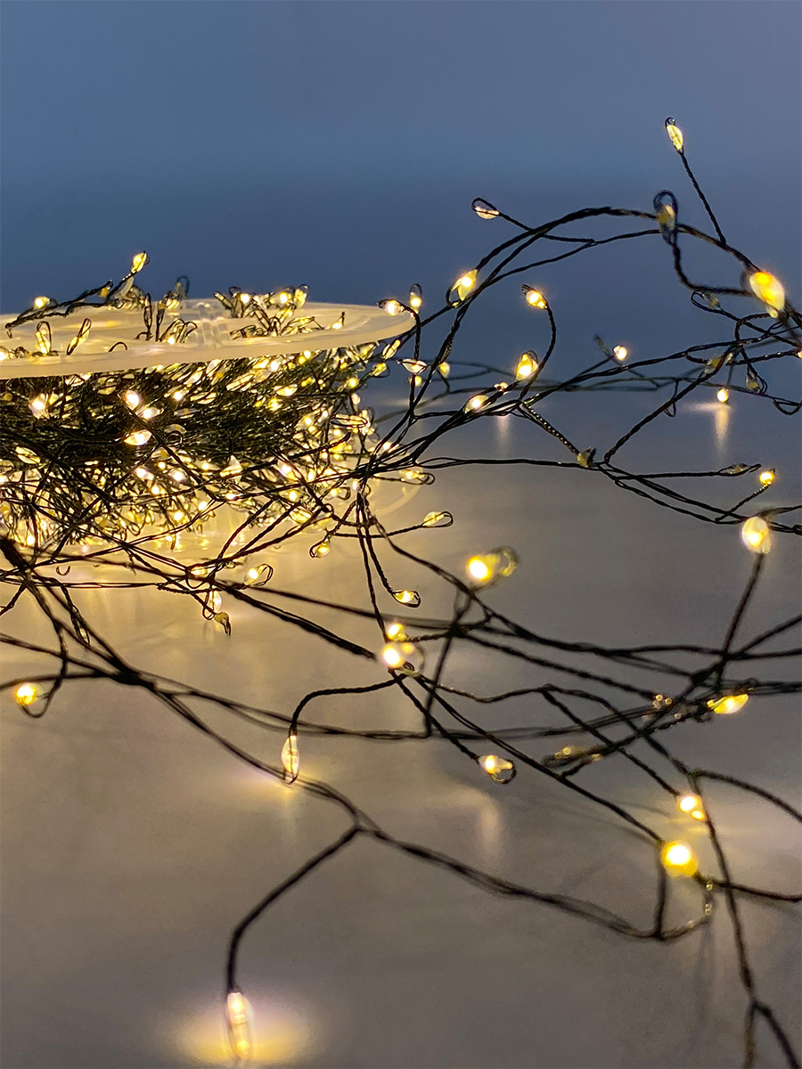 Гирлянда упаковна в коробку. Пластиковая катушка удобна для сборки и хранения.