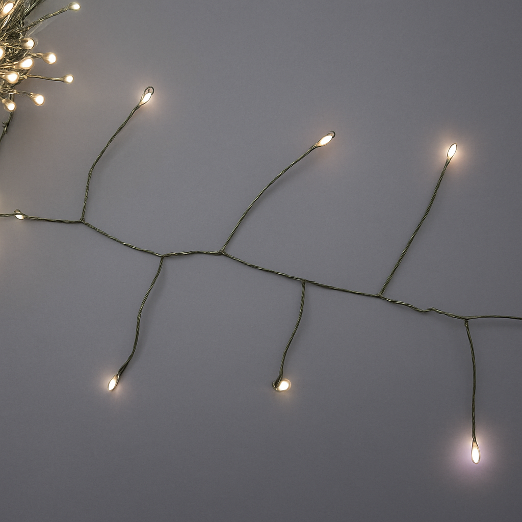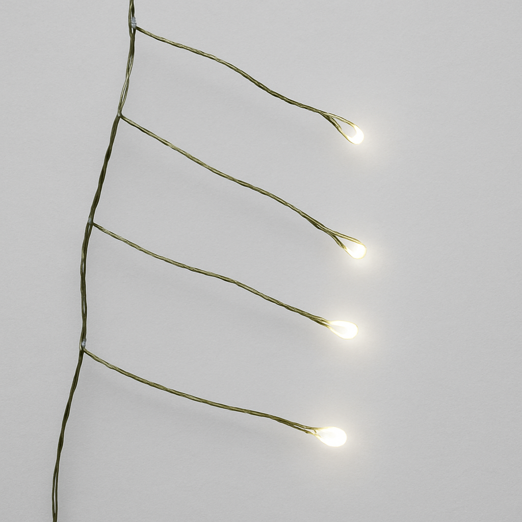 Она заменит 2-3 аналогичных гирлянды. Гирлянда идет на проволоке с LED лампами — яркое и надежное украшение для дома и улицы! Работает от сети 220 В через адаптер, понижающий напряжение до безопасных 31 В. Защита IP44 гарантирует работу даже под дождём и снегом, а устойчивость к температурам от -30°С до +30°С делает её незаменимой в любых условиях. Особенность — шаг 4+1: четыре обычных светодиода и одна мерцающая лампочка создают живой, мерцающий световой эффект. Благодаря особому размещению LED ламп на отростках, отходящих от основного провода, гирлянда требует меньше длины для достижения высокой густоты и насыщенности света, что делает её особенно экономичной и эффектной. Гибкий проволочный провод позволяет легко закрепить гирлянду на ветках, фасадах и окнах. Главные плюсы: Безопасное питание через адаптер. Высокая влагозащита IP44. Надежность в холод и жару. Оригинальное мерцание одной лампочки. Большая густота и насыщенность светового эффекта при меньшей длине гирлянды. Удобный монтаж благодаря гибкому проводу.