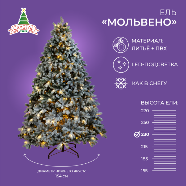 Ель МОЛЬВЕНО в снегу с вплетенной гирляндой 230 см
