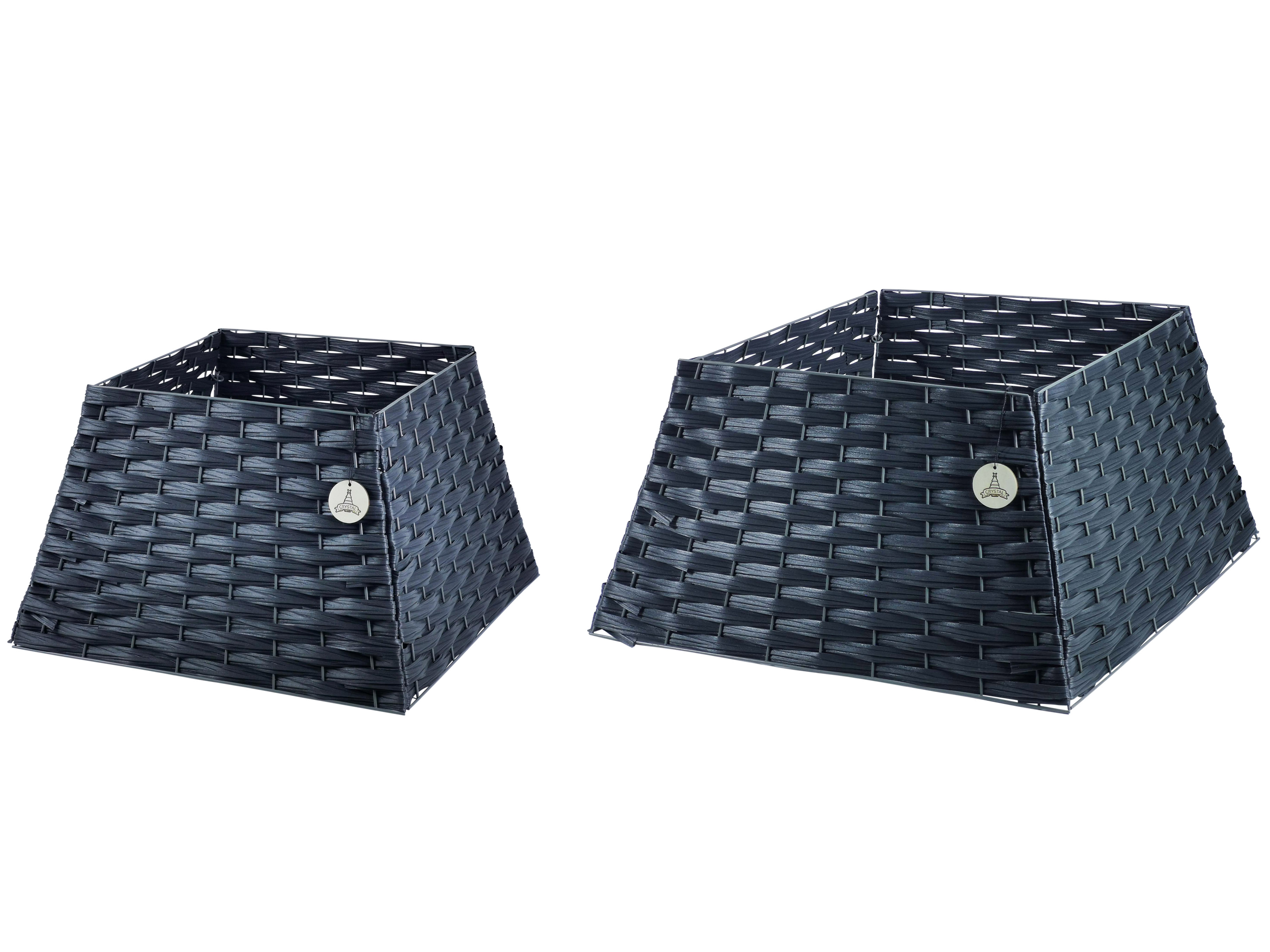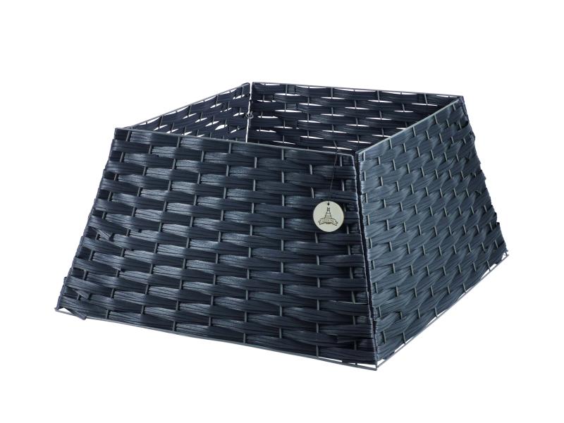 Сборная компактная корзина под елку из искусственного ротанга на металлическом каркасе. упакована в коробку и чехол-пыльник для хранения. Удобно хранить, искользовать. Простая сборка.
