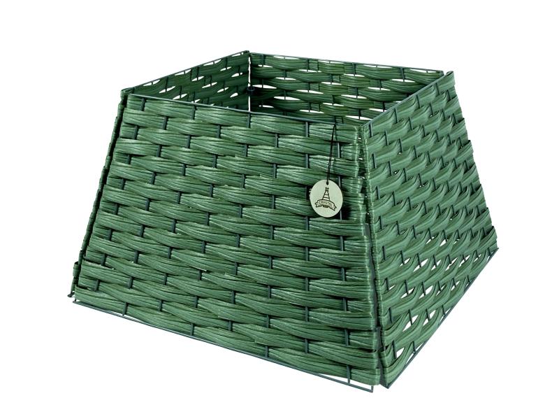Сборная компактная корзина под елку из искусственного ротанга на металлическом каркасе. упакована в коробку и чехол-пыльник для хранения. Удобно хранить, искользовать. Простая сборка.