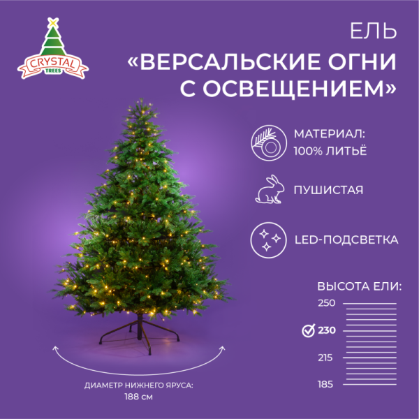 А еще эта ель представлена в двух вариациях: с безопасной встроенной гирляндой и без нее. Наши гирлянды высокого качества - частые, долговечные огоньки, плотная намотка на ветви.