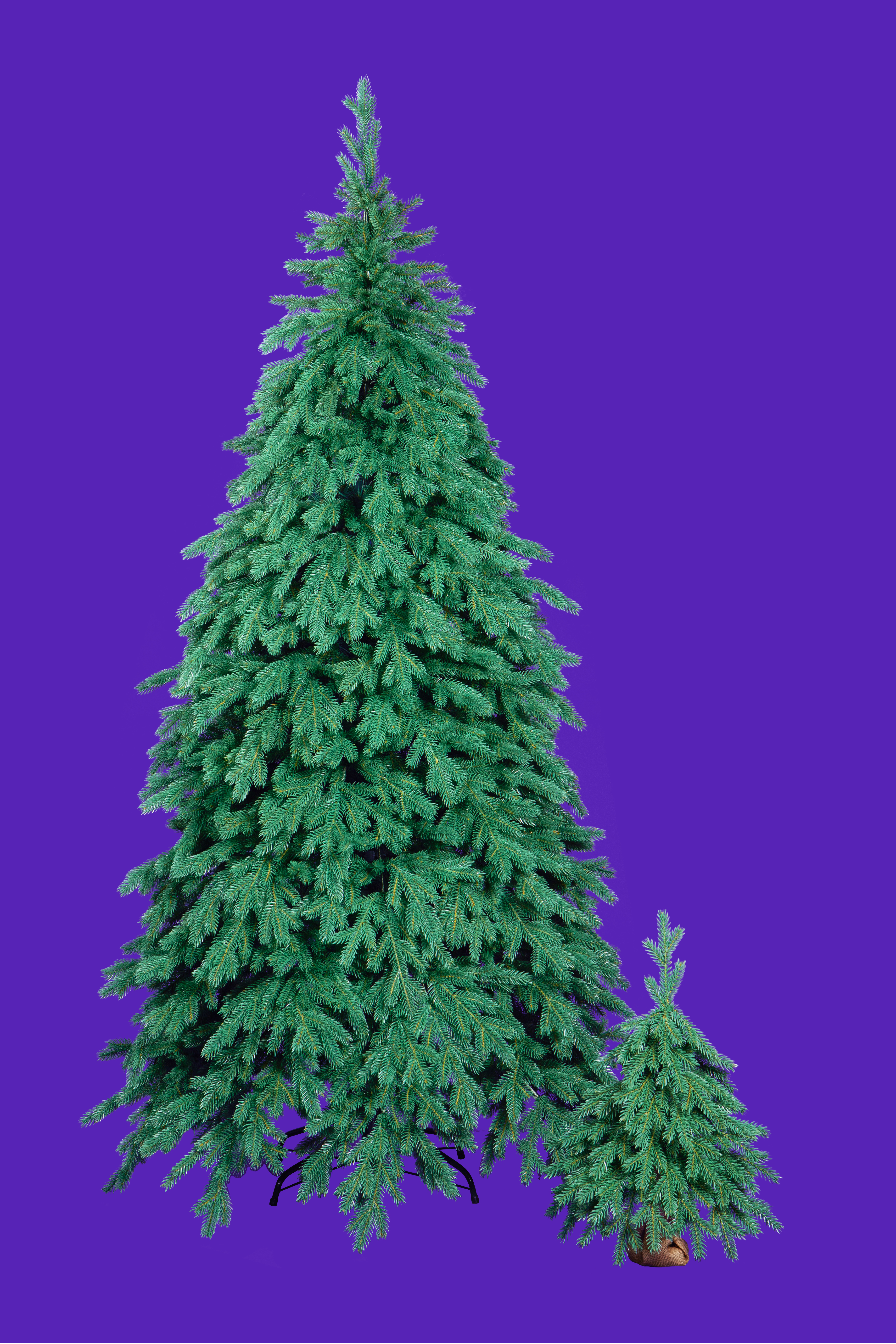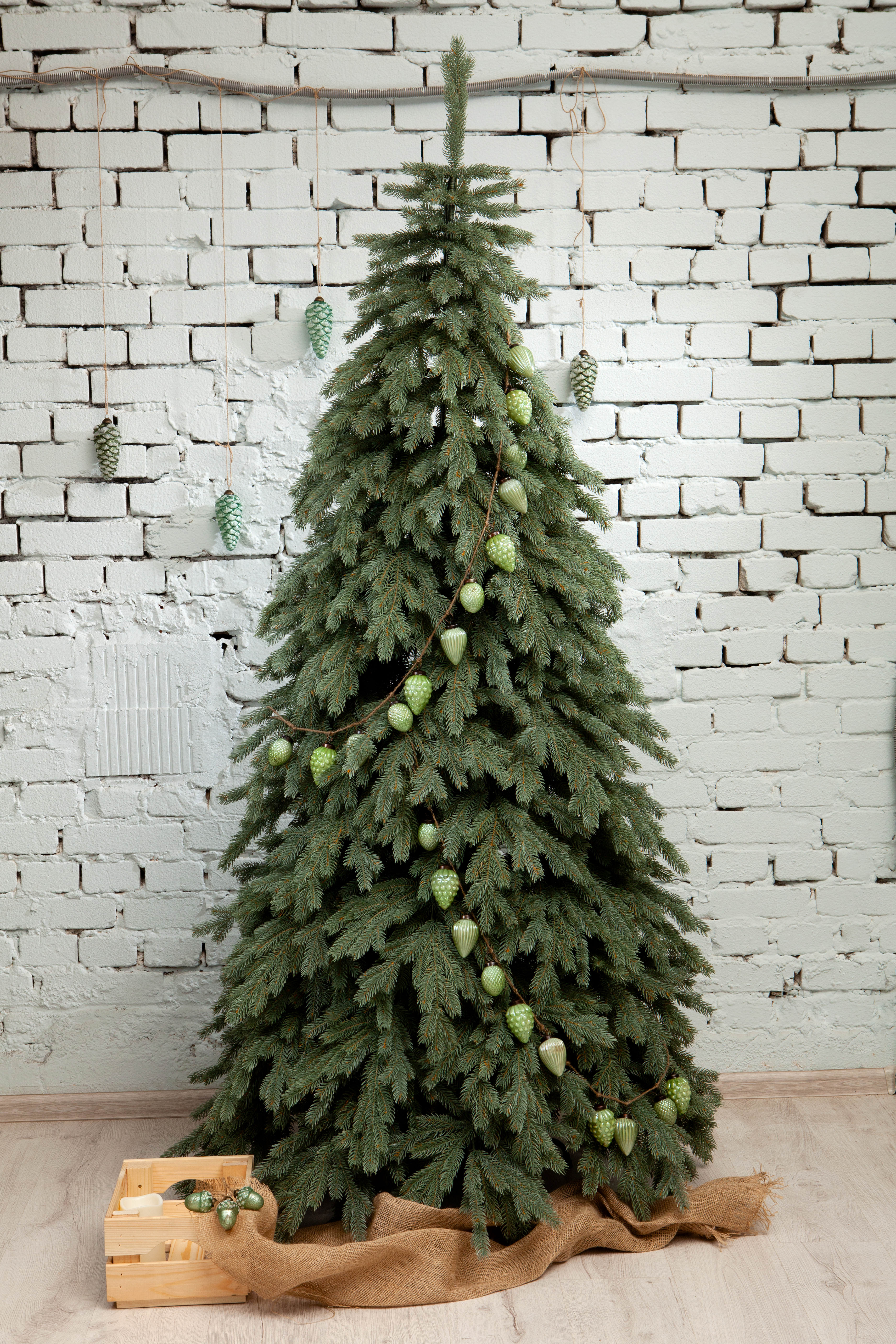 У дерева вставной (крючки) тип крепления веток под углом 75%. Это наше новаторское решение. Оно позволяет веткам сразу смотреть вниз и собираться в виде пальмового листа или веером.