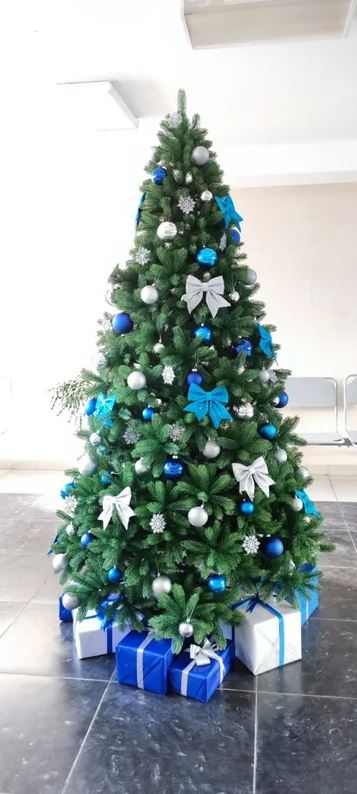 Её ветви изготовлены из 100% резины, что делает их почти неотличимыми от натуральных. Иголки мягкие, не требуют распушения. Ветки на шарнирах. Достаточно раскинуть их и немного расправить.