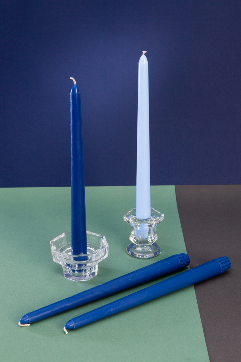 В набор входит конусные свечи 4 шт, высотой 25 см., три свечи синего и одна свеча голубого цвета.  Свечи- конструктор для интерьера  ТМ Crystal Style - это яркие и необычные цвета и формы, которые выделят и украсят ваше пространство. Подойдут для любого интерьера и оформления. Их можно сочетать между собой и использовать в фотостудиях, кабинетах массажа, спа, ресторанах, домах, квартирах и на улице. В оформлении разных праздничных событий. Наборы можно дарить друзьям, сослуживцам, руководителю. Отличная идея для подарка. Свечи изготовлены из парафина и красителей европейского качества. Свечи без отдушек. Фитиль из натуральной хлопковой нити. Высокое качество парафина: обеспечивает длительное горение и ровное пламя, не создавая дыма или неприятного запаха. Создавайте смелые композиции, сочетайте этот набор со свечами из серии "Калейдоскоп", "Розовые пионы", "Морской воздух", "Небо в облаках".