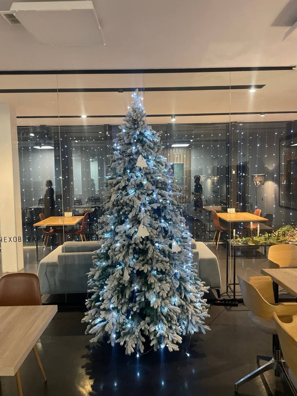 У дерева вставной (крючки) тип крепления веток под углом 75%. Это наше новаторское решение. Оно позволяет веткам сразу смотреть вниз и собираться в виде пальмового листа или веером.